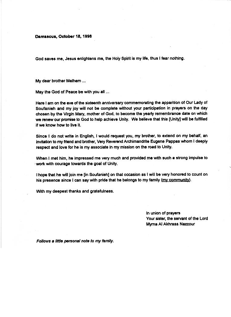 Letter to Msgr Eugene N. Pappas - Greek Orthodox Lettre à Mgr Eugène N. Pappas - Grec Orthodoxe